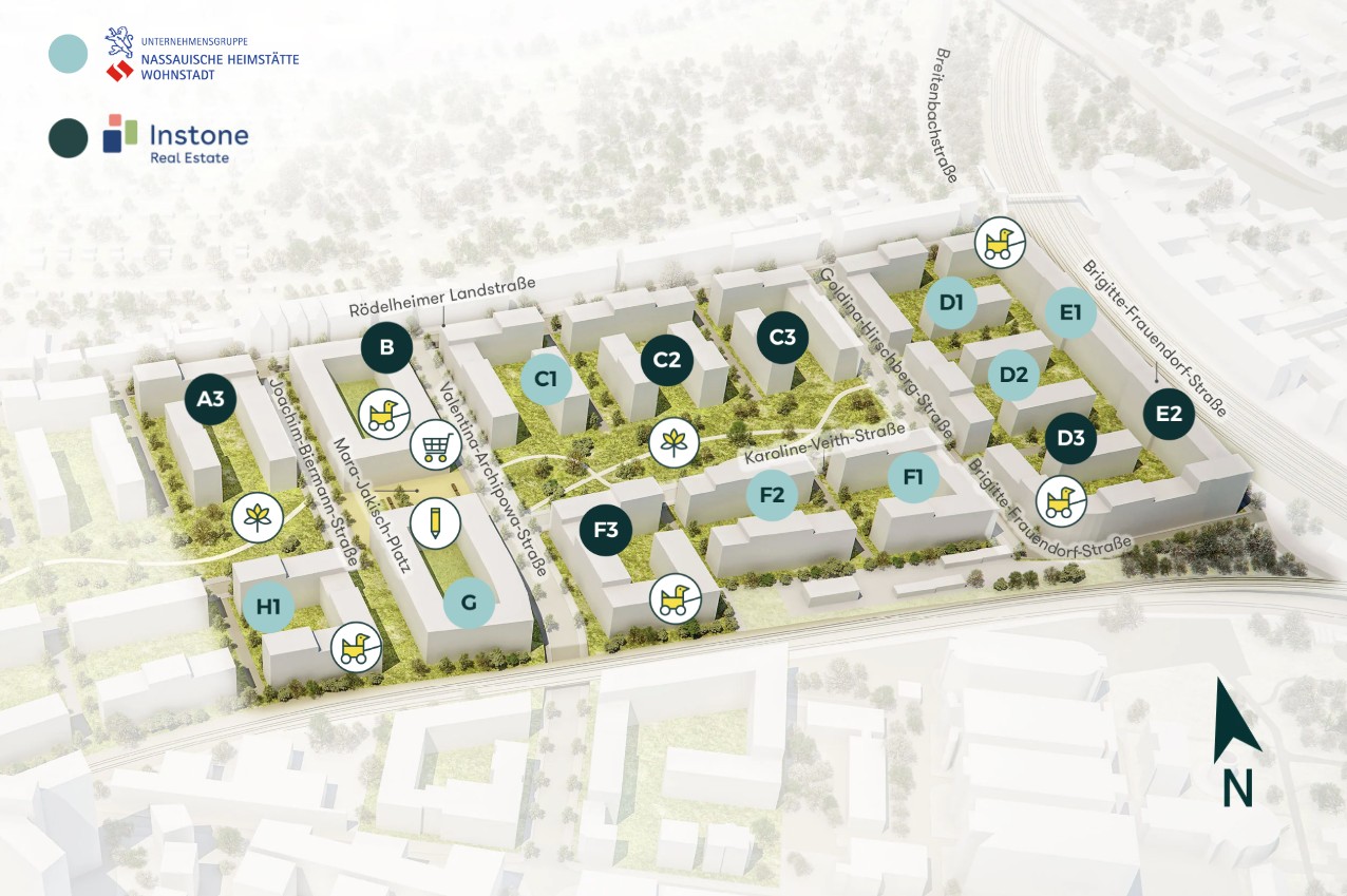 Mit den Bauten der beiden nördlichen Baufelder Florentinus und C3 konnten wir wesentliche Bausteine zu dem neuen, zentrumsnahen Wohnquartier in Frankfurt-Bockenheim beitragen.