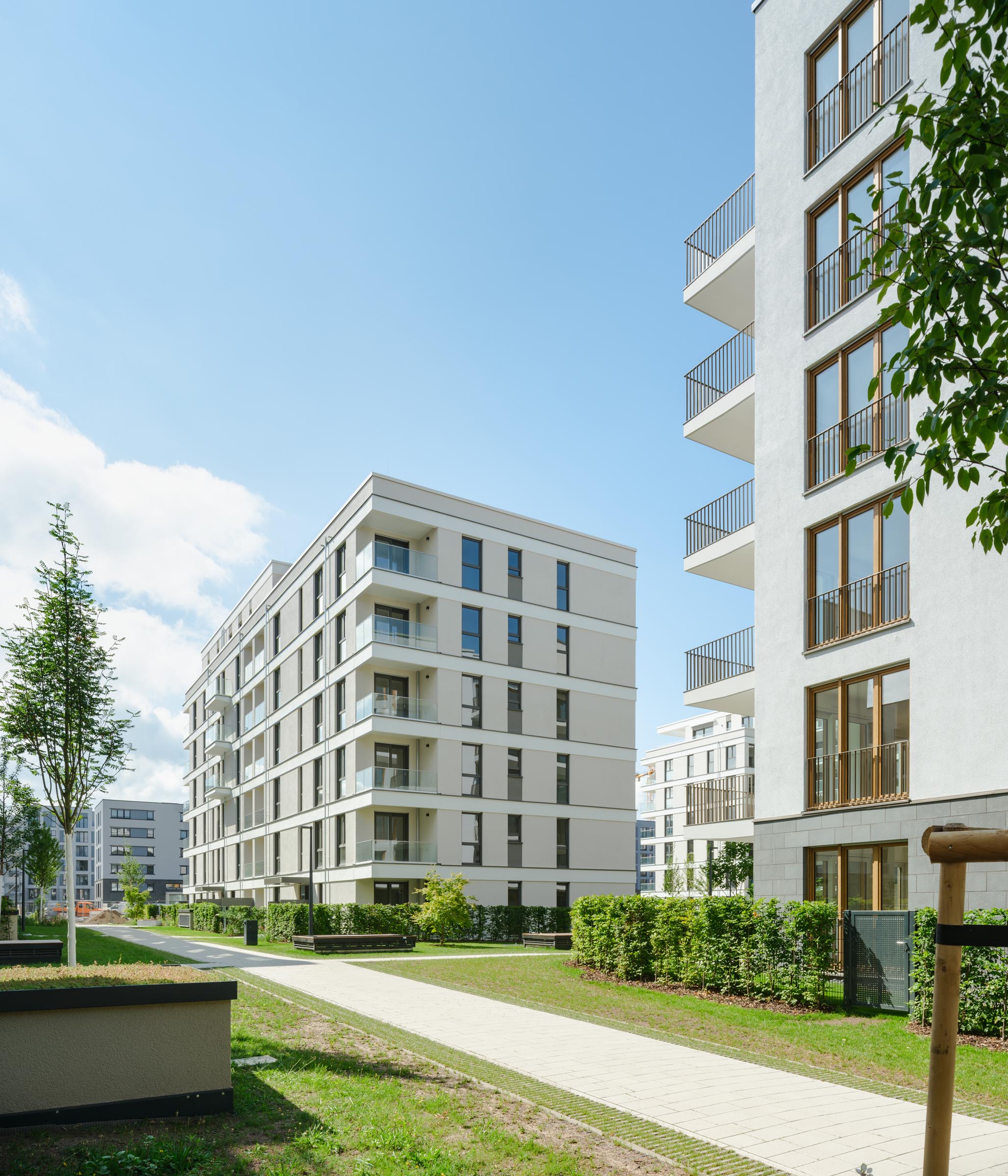 Das weitgehend autofreie Quartier entsteht als nachhaltiges Wohnquartier mit höchster Lebensqualität. Dank großzügiger Grünflächen, Spielplätzen und eines zentralen Parks entwickelt sich ein lebendiges Umfeld für Jung und Alt.